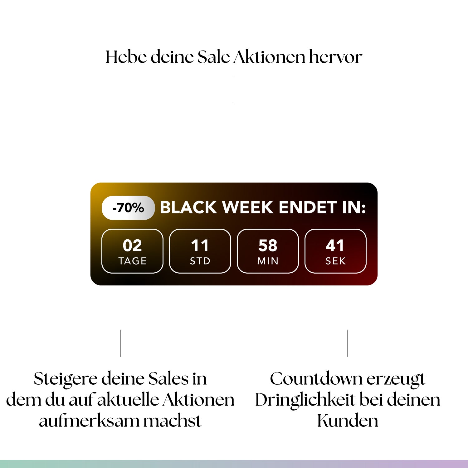 - Terminierter Countdown: Lege exakte Start- & Enddaten fest – perfekt für zeitlich begrenzte Q4-Promos.